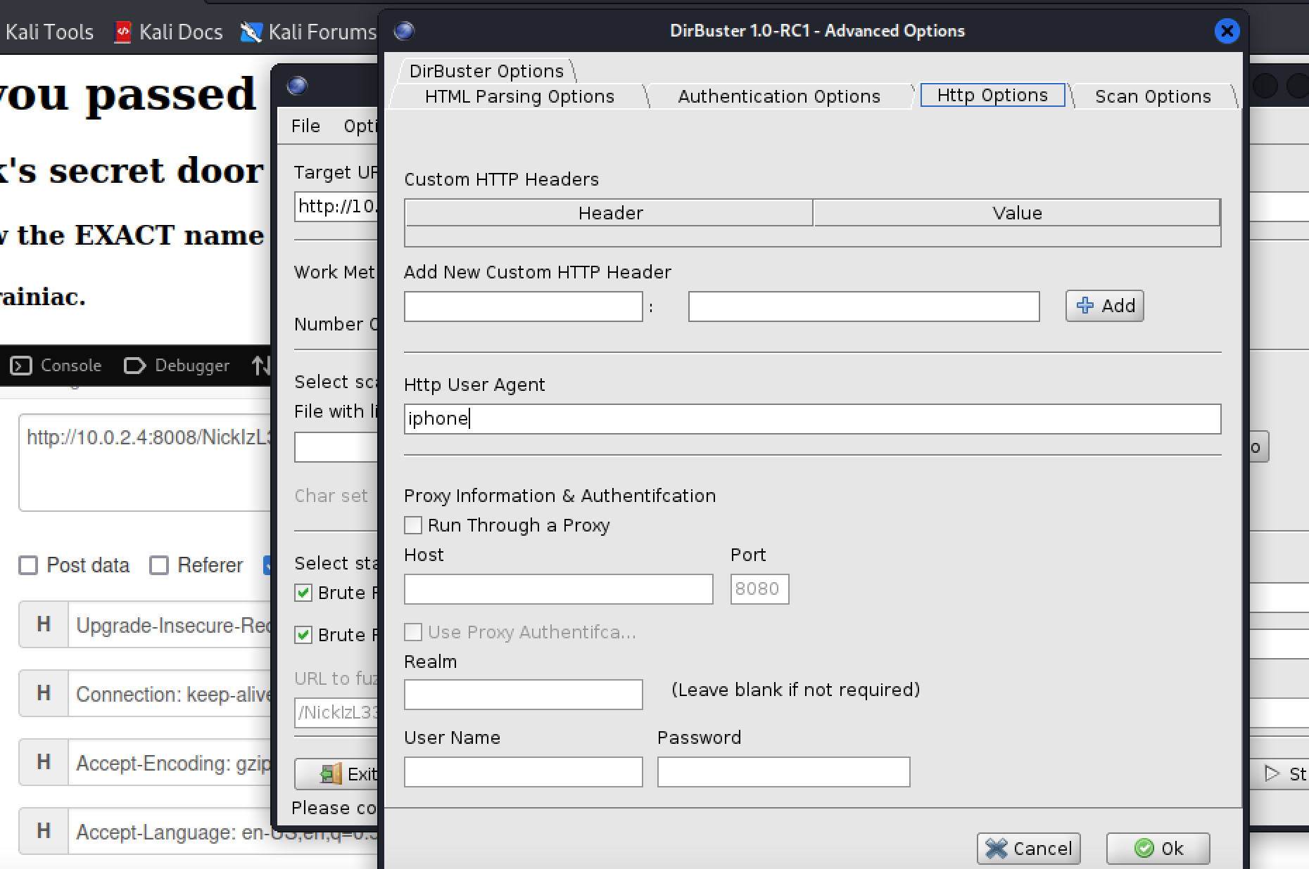 发现8008网站的目录,根据提示修改UA,并爆破网页名