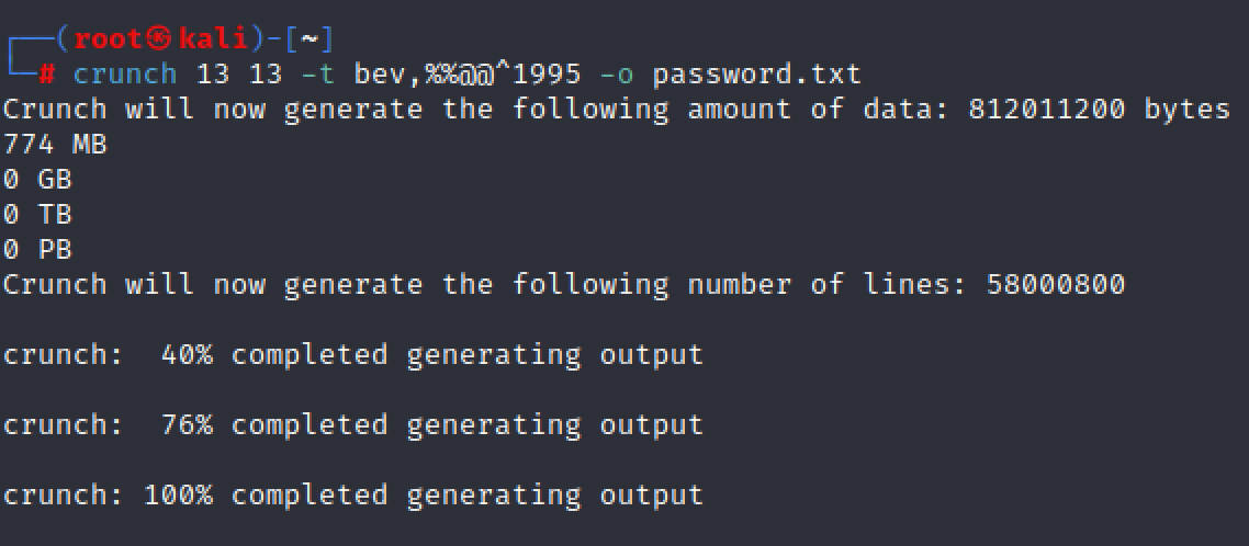 - 根据hint中的提示,生成密码字典,我用的crunch