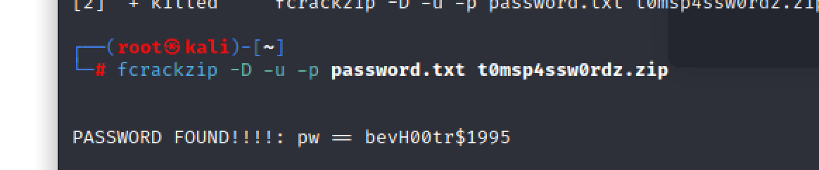 - 用fcrackzip爆破成功得到3对用户名和密码,以及一个没有密码的用户名(错的)(前两对密码p用没有,第三对据hint是server的用户名和密码)