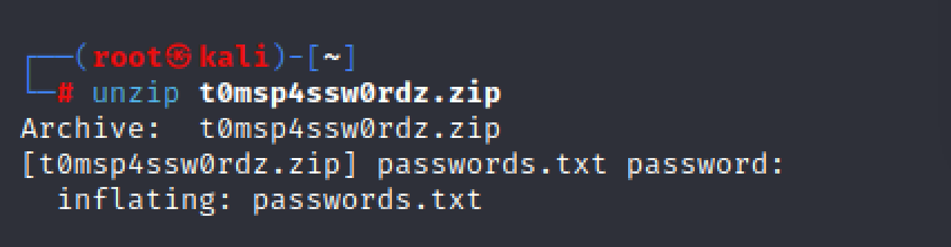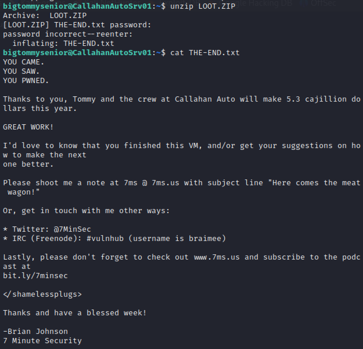 - 拼接5个flag,解压loot.zip,通关该靶场