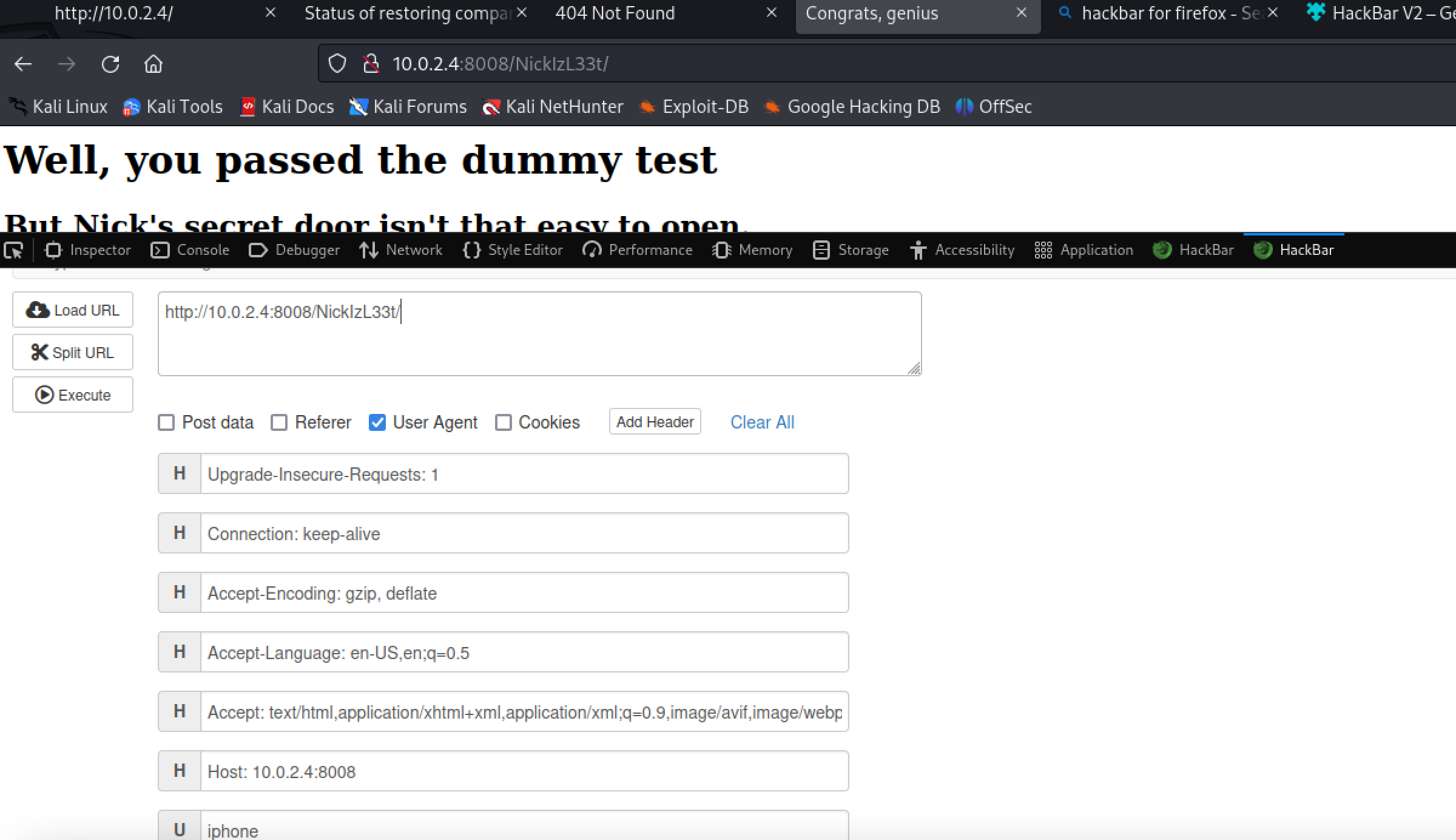 发现8008网站的目录,根据提示修改UA,并爆破网页名